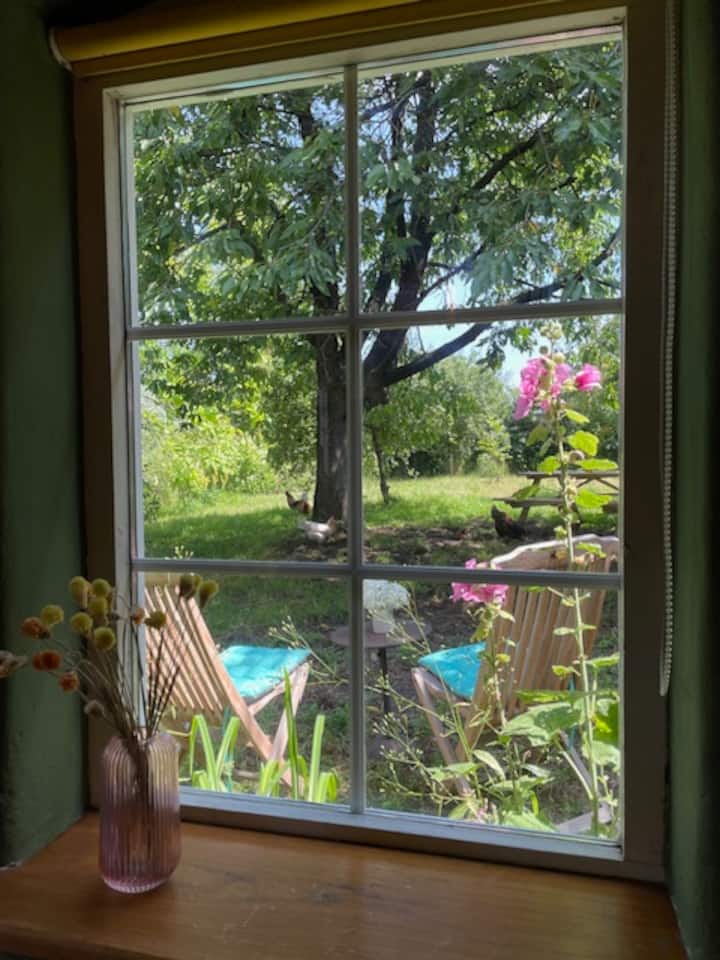 Welkom! Wij, Jorg en Geertje, wonen en werken met onze vier kinderen op deze prachtige natuurboerderij in de Achterhoek. Dagelijks zijn we bezig met het onderhouden van ons voedselbos, de boomgaard en onze moestuin. Vanaf hier organiseren we ook workshops en activiteiten. We vinden het geweldig dat we jullie via ons vakantiehuisje de kans kunnen geven om zelf de rust en schoonheid van onze 2 hectare natuur te ervaren.