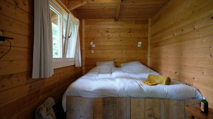 Houten chalet aan de rivier de Waal
