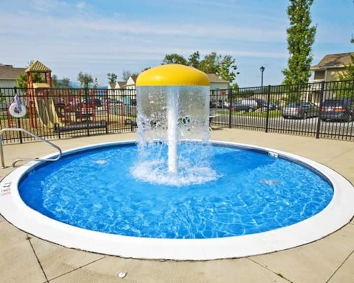 1 King BD Apt • keuken • woonkamer • zwembad