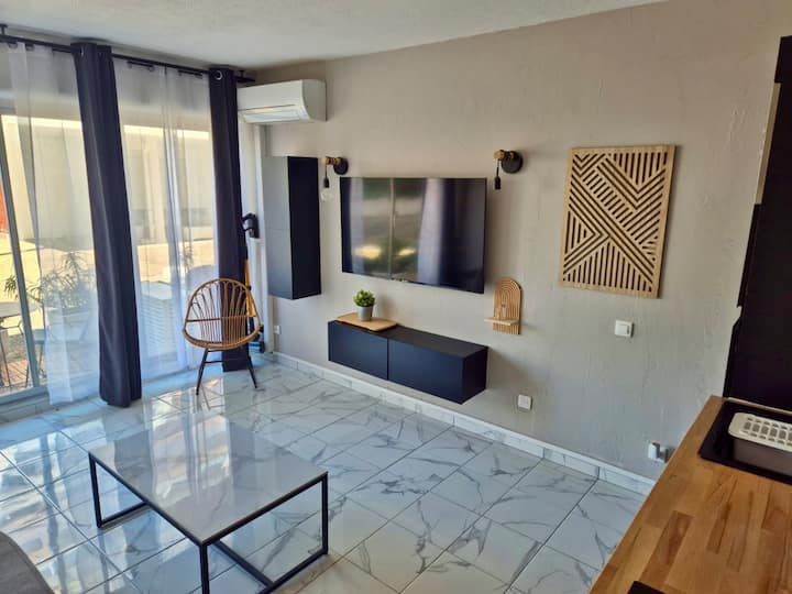 L'Écrin de La Grande Motte, is een prachtige, zeer lichte studio met uitzicht op de haven en directe toegang tot de zee.