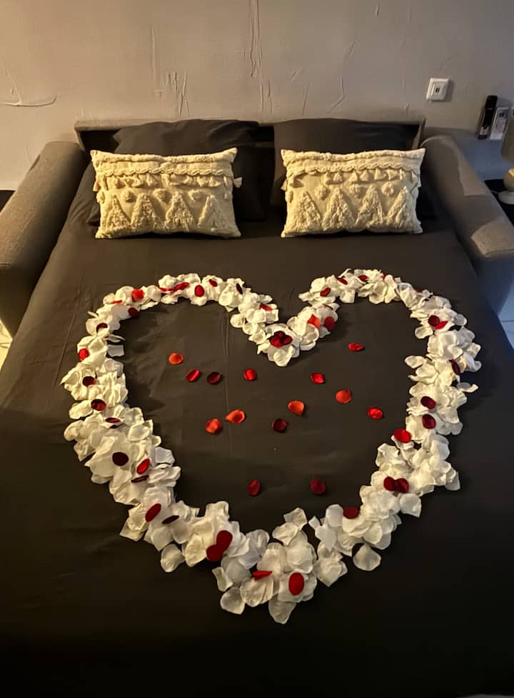 Converteerbare slaapbank met matras van 9 cm, hoogwaardig beddengoed schoongemaakt en verschoond tussen elke huur.