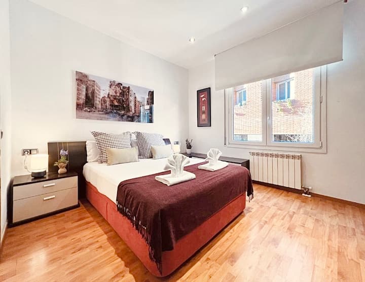 Modern en zeer gezellig appartement, speciaal ontworpen voor gezinnen, groepen of koppels. Het is volledig uitgerust en heeft alle voorzieningen die nodig zijn voor je verblijf. Airconditioning en verwarming. Het ligt op slechts vijf minuten van de metro en het is gemakkelijk om toegang te krijgen tot de belangrijkste toeristische attracties.