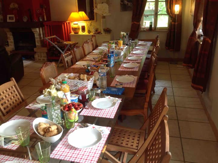 We bieden een bed and breakfast met vijf kamers, allemaal met aparte badkamers. De prijzen variëren van € 60 per nacht voor een stel voor de kleinste kamers van € 90 per nacht voor een grote suite voor drie personen. De 'coquelicot'-suite is aangepast voor gasten met gereduceerde mobiliteit, waaronder een elektrisch medisch bed.