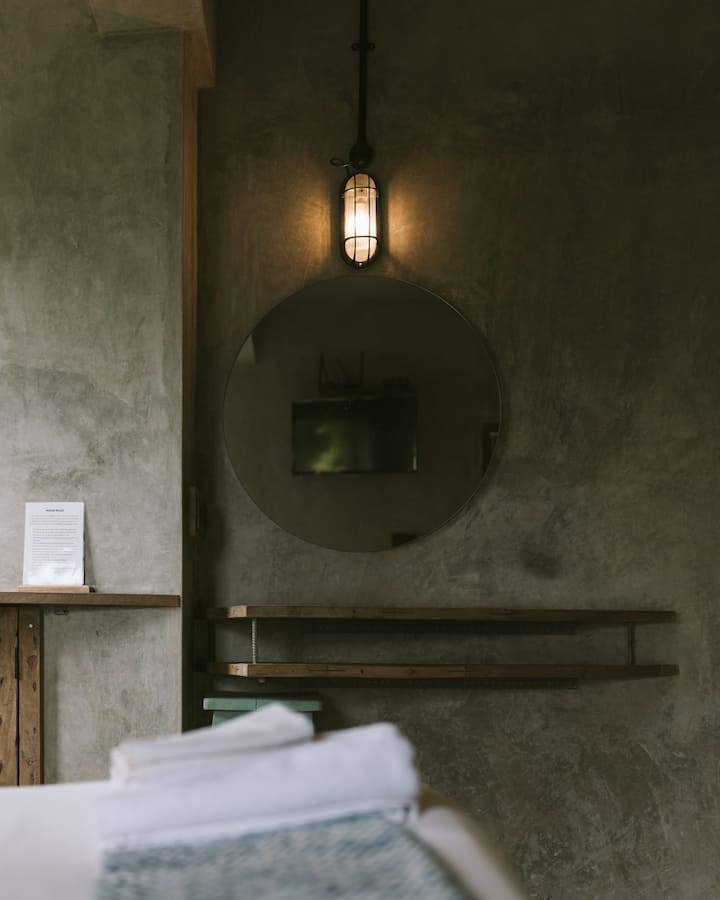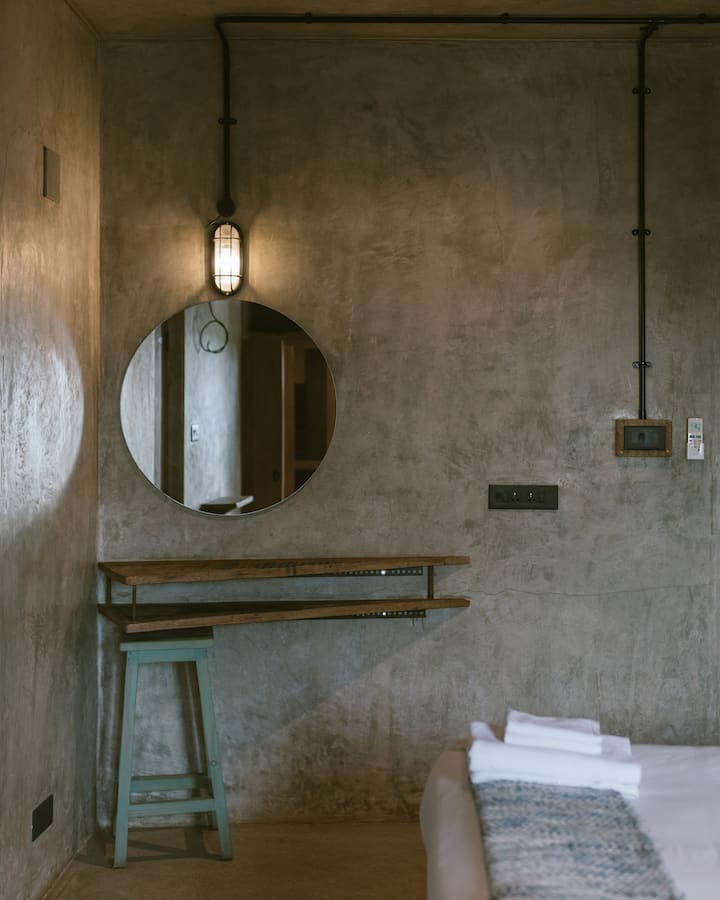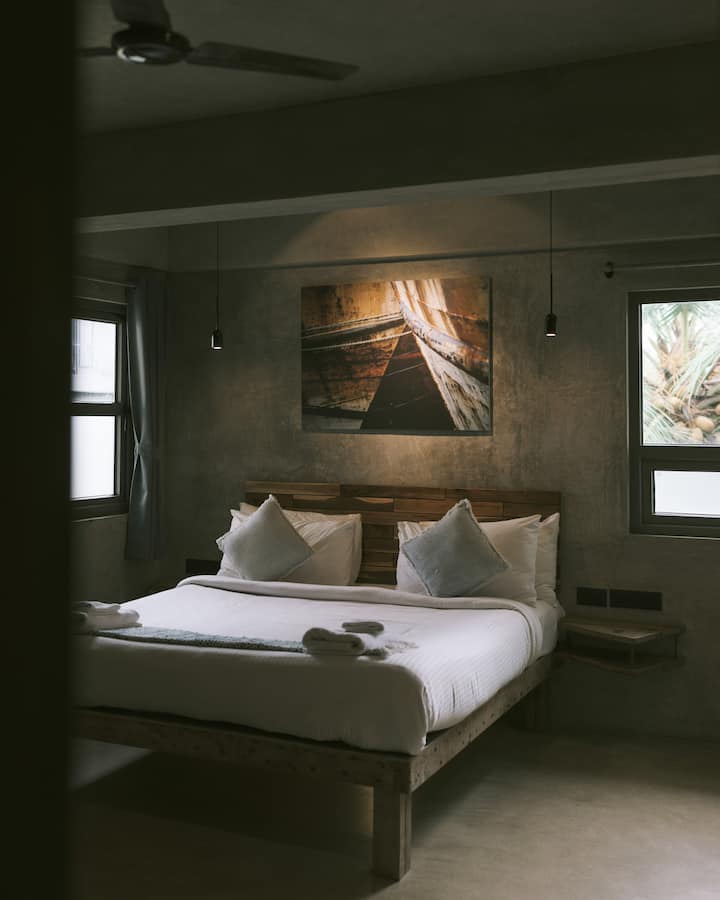 Onze strakke studioruimte bevindt zich in het schilderachtige dorpje Nerul in Noord-Goa. Al onze ruimtes zijn milieuvriendelijk en gebruiken lokaal geproduceerde materialen en textiel. De slaapkamer is voorzien van een kingsize bed, een eigen badkamer, een kast voor je persoonlijke bezittingen, tv, waterkoker en een barkoelkast. De studio is perfect voor een stel dat van plan is om op vakantie te gaan in Goa. Al onze gasten kunnen gebruikmaken van de mooie buitenlounge met een overloopzwembad, dat uitkijkt op de groene rijstvelden.
