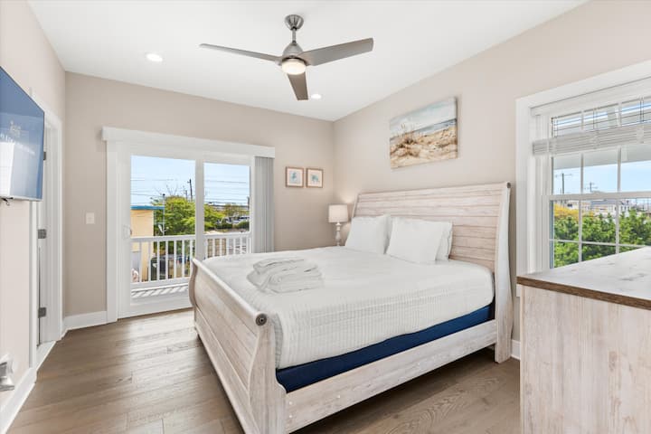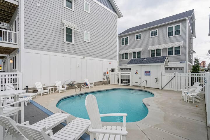 Welkom bij The Salty Deckhouse - een modern 3BD/3.5BA-retraite in het hart van de levendige wijk aan het water van Ocean City. Deze stijlvolle woning ligt op slechts enkele stappen van Fish Tales en op enkele minuten van het strand, de promenade en het pretpark Jolly Roger. Het biedt toegang tot de baai, een verwarmd buitenzwembad, een designkeuken, een eigen terras en een parkeergarage. Je bent ook op loopafstand van The Reel Inn, waar de White Marlin Open weegschalen worden gehouden - een niet te missen lokaal evenement! Het is de perfecte plek om blijvende herinneringen te maken.