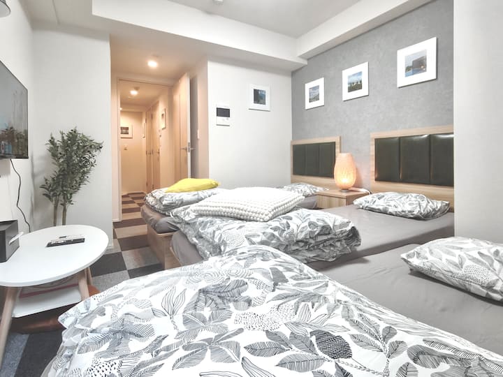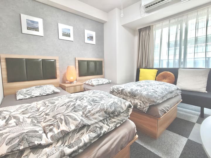 @501 Hotel Shu Shinjuku Gyoen (1DK) Shinjuku-gebied, geschikt voor maximaal 3 personen, twin bed plus slaapbank