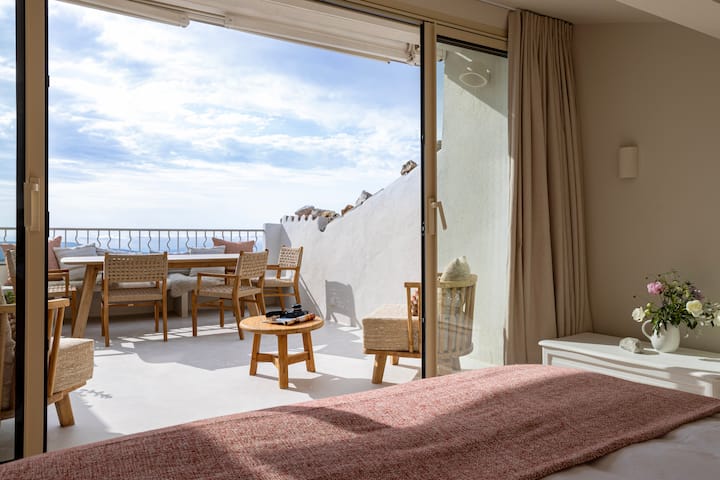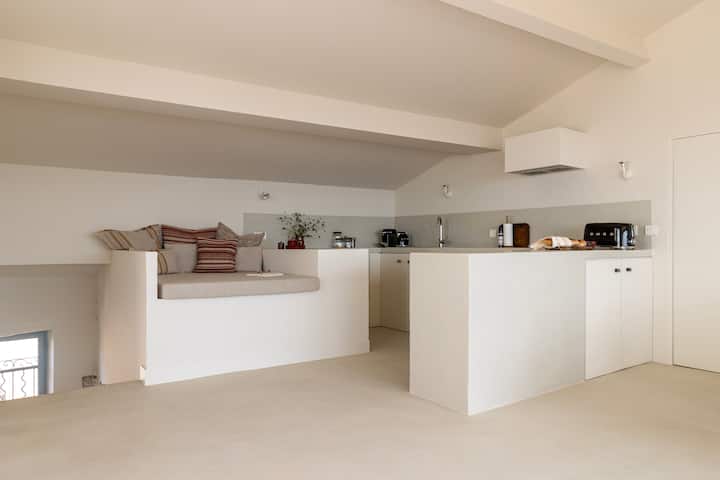 Begin je dag in dit deluxe appartement van 76 m² met een ruim privéterras en een adembenemend uitzicht over Mons, het omliggende landschap en in de verte de zee. Het terras beschikt over een comfortabele zithoek waar je in alle rust kunt genieten van de zon, het uitzicht en de Provençaalse sfeer.