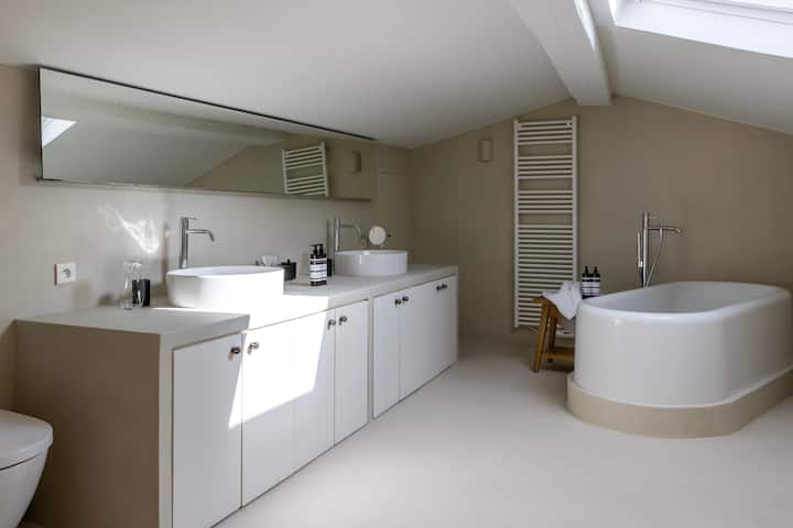 Dit stijlvolle appartement is geschikt voor twee gasten en combineert charme met modern comfort. Het beschikt over een comfortabele slaapkamer, een volledig uitgeruste keuken en een luxe badkamer met vrijstaand ligbad en hoogwaardige badproducten. Daarnaast is het appartement voorzien van wifi, airconditioning, koffie- en theefaciliteiten en een föhn.