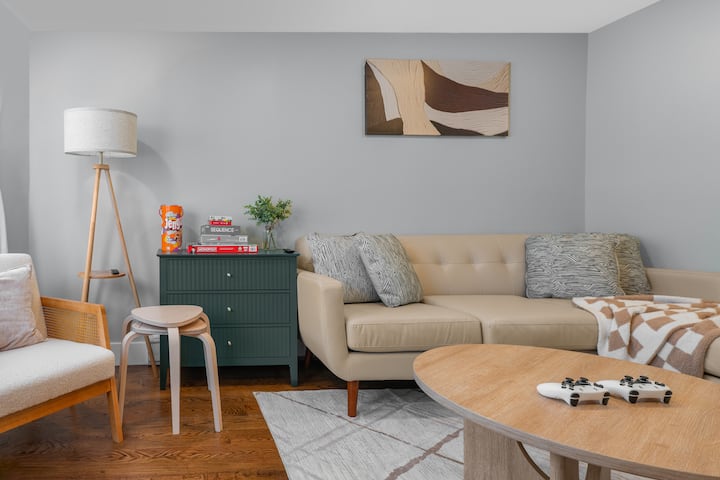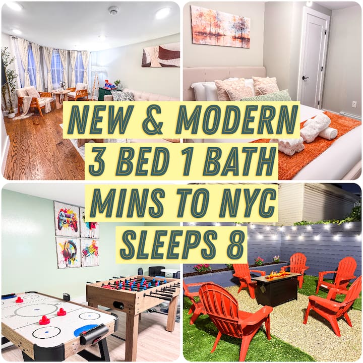 Modern juweeltje met 3 slaapkamers - Minuten naar NYC - Achtertuin - Speelkamer
