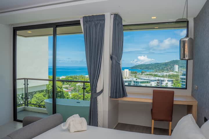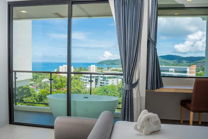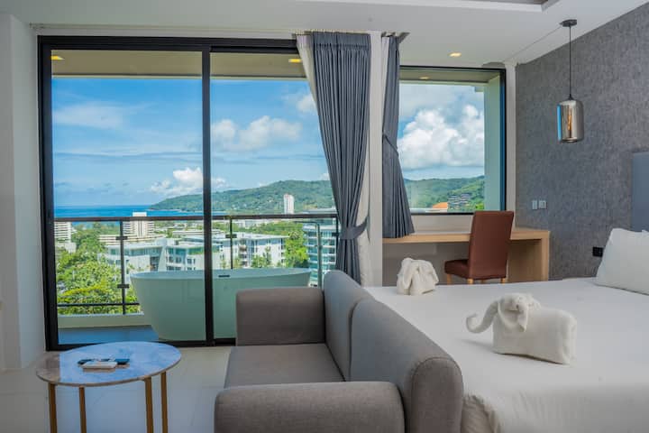 Karon Beach|Luxe appartement met zeezicht / Balkonbad / Zwembad op het dak / Fitnessruimte