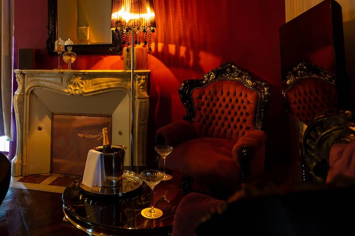 De Love Room "Les Secrets du Mont" ligt in het hart van een eeuwenoud park en verwelkomt je in een verfijnd appartement, ontworpen als een intieme oase voor twee. Hier staat de tijd stil, blikken blijven hangen en elk detail is gemaakt om je romantische momenten te versterken.