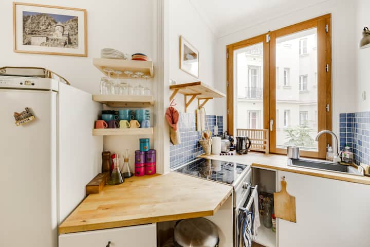 20 minuten met de metro naar Galeries Lafayette en Opéra Garnier.