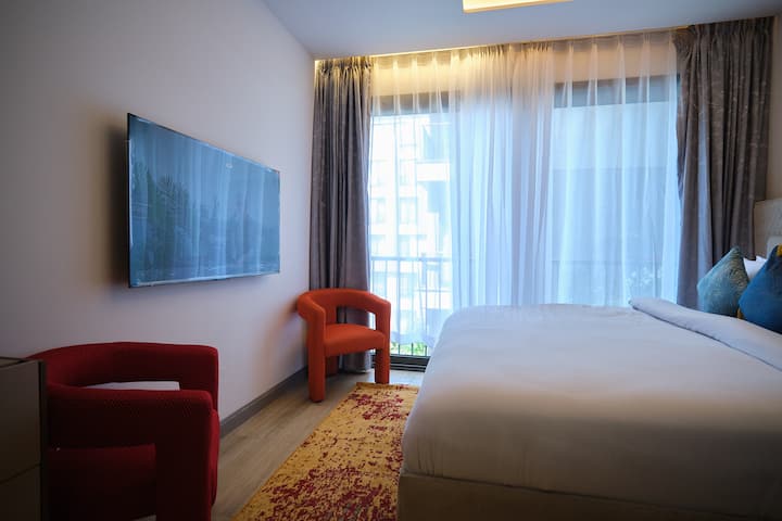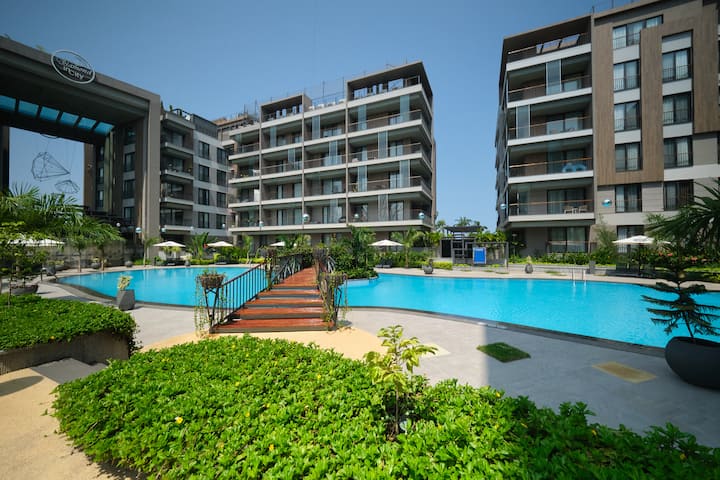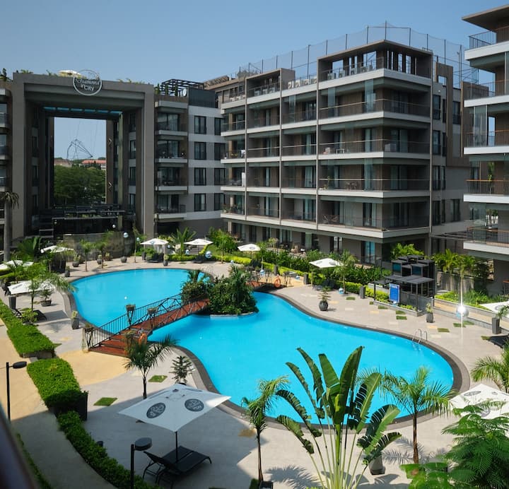 Luxe één slaapkamer met uitzicht op het zwembad bij Diamond in de stad