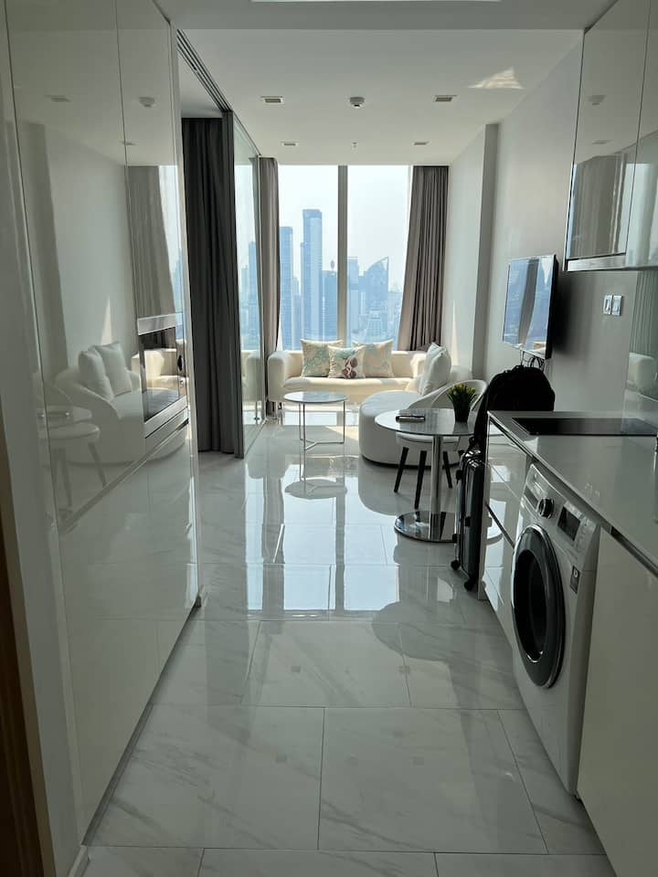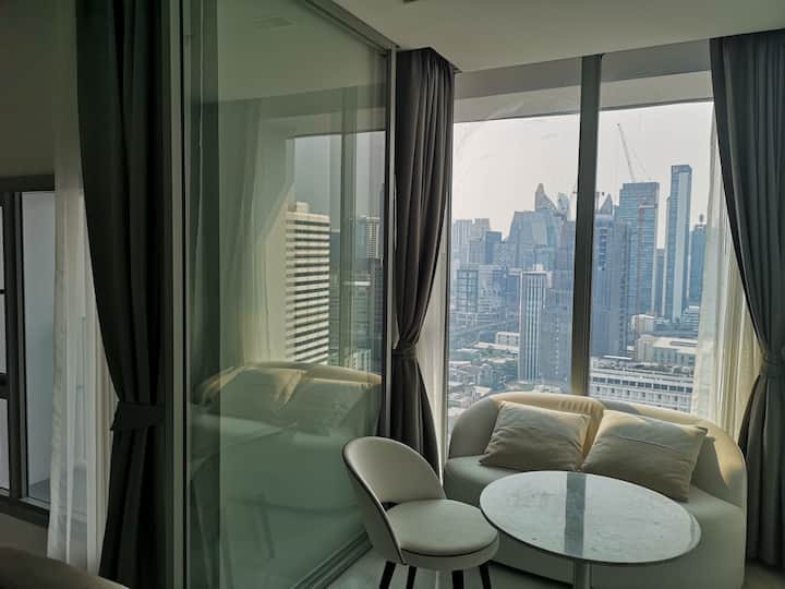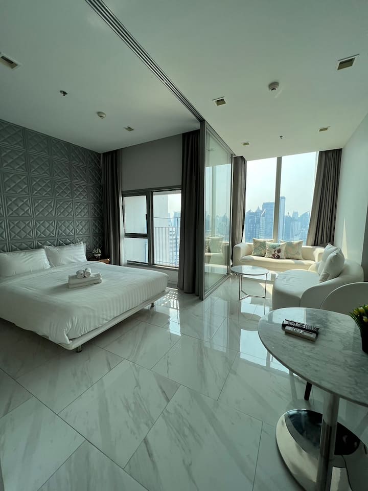 Hyde11 is een modern luxe hoogbouwappartement in het hart van Sukhumvit, slechts één halte naar het kruispunt van Asoke, twee haltes naar de Erawan Boeddha, gemakkelijk te verkennen en files op Sukhumvit te vermijden tijdens de spitsuren.
