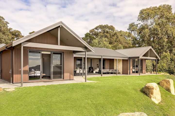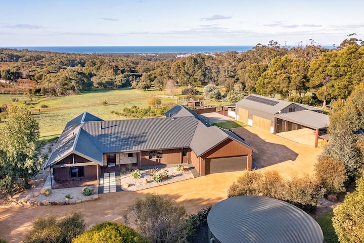 LUXE LANDELIJKE VAKANTIEWONING OP 3 ACRE MET BETOVERENDE UITZICHTEN OP DE VALLEI EN DE OCEAAN. GENIET VAN HEERLIJKE DAGEN MET HET BEWONDEREN VAN HET SCHILDERACHTIGE UITZICHT; GUNSTIG GELEGEN OP SLECHTS 6 MINUTEN VAN HET STADSCENTRUM VAN DUNSBOROUGH.
