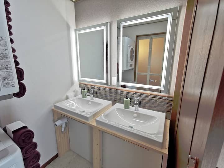 Het heeft een Panasonic volautomatische wasmachine en droger.Wasmiddel, knijphangers, etc. zijn aanwezig, zodat u thuis de was kunt doen.We hebben ook kleding drogen, zodat je de veranda kunt drogen.