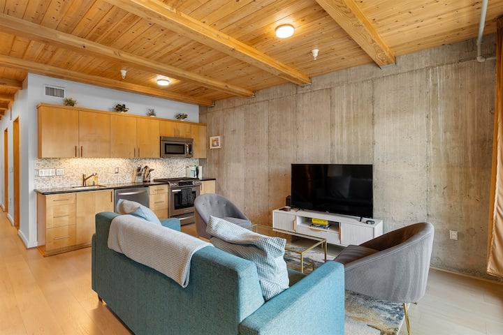 Ons moderne en strakke condo ligt direct aan de belangrijkste drag van hippe en levendige Mississippi Avenue en wacht op je aankomst! Stap naar buiten op het balkon en kijk uit naar de actie op straat. Maar maak je geen zorgen, het betonnen gebouw houdt al het lawaai buiten als je dat wilt. Perfect gelegen zodat je direct de voordeur uit kunt lopen naar een aantal van de beste gerechten en winkels in Portland. In de buurt van de luchthaven, en op slechts een korte rit/fiets/scoot naar het centrum, het moda-centrum en andere populaire buurten zoals Alberta en North Williams, wat zou je nog meer kunnen vragen?