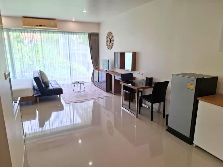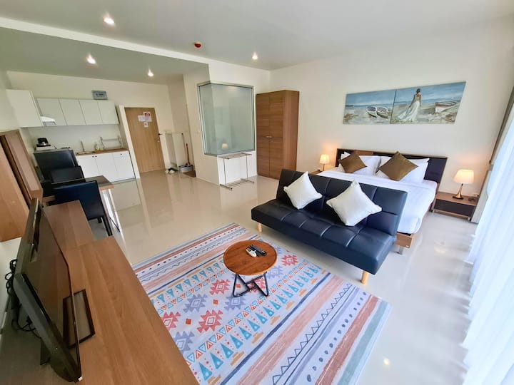 Welkom in ons ruime en brede studio-appartement op een centrale locatie, op slechts 900 meter van Karon Beach. Dit appartement ligt in het hart van Karon, maar weg van de drukte, op 5 minuten lopen naar Wat Karon Temple, op 10 minuten lopen naar het strand! Ontspan op het grote balkon met uitzicht op de natuur. Zwembad, fitnessruimte en 24-uurs beveiliging zijn beschikbaar. Verken nabijgelegen restaurants, bars en winkels. We kijken ernaar uit om je te ontvangen voor een onvergetelijke ervaring in Phuket, een perfecte plek voor een rustige vakantie of avontuur!