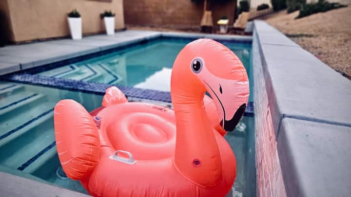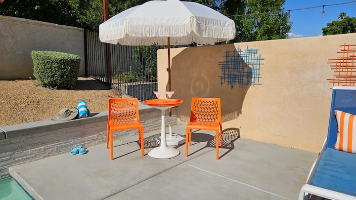 Bij Desert Dip & Splash is elk detail ontworpen om je te helpen ontspannen en verbinden — of je nu in het zwembad spettert, in de jacuzzi geniet of verhalen deelt rond de buitentafel met levendige vintage gerechten. Het is meer dan een vakantiewoning; het is je woestijnoase, je festivalbasiskamp, je moderne droom uit het midden van de eeuw.