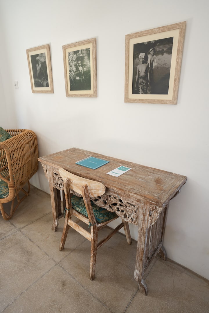 Lakra Villas ligt verscholen in een rustige, groene omgeving, maar op slechts een klein stukje rijden (of fietsen) van lokale stranden, cafés, markten en culturele bezienswaardigheden. Of je nu op zoek bent naar het verkennen van de omgeving of genieten van langzame dagen in je Joglo, dit is de ideale uitvalsbasis.