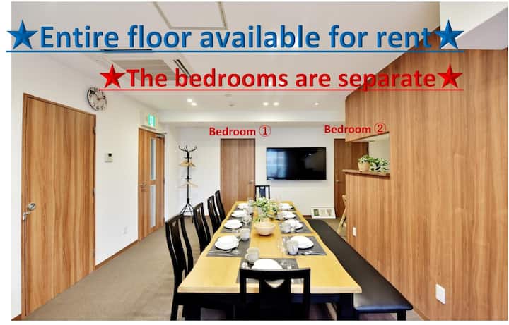 8 minuten lopen van Shinsaibashi Station. Het kan maximaal 8 personen herbergen en is ideaal voor gezinnen en groepsreizen! Shinsaibashi en Namba liggen op loopafstand!