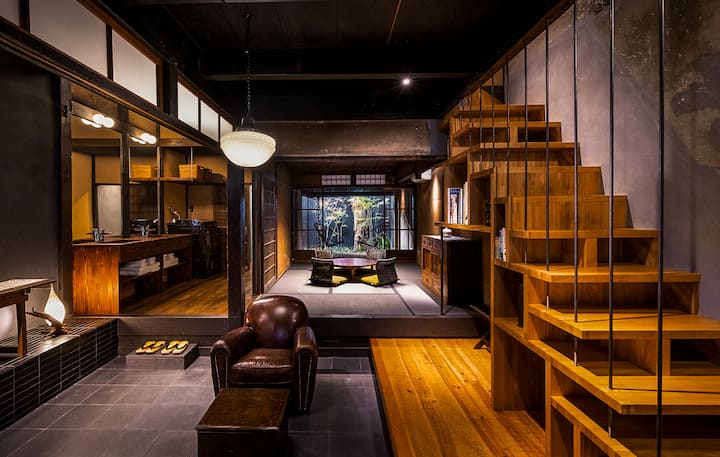 Het ligt in het hart van Kyoto en behoudt de schoonheid van de historische architectuur van het herenhuis, terwijl het een doordacht ontworpen, comfortabele leefruimte biedt.
