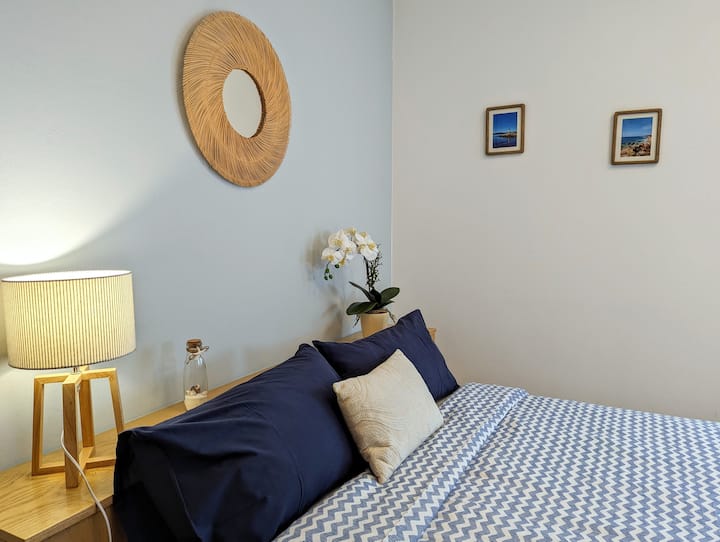 Uitzicht op zee, twee kamers en terras, 10 minuten van de beurs