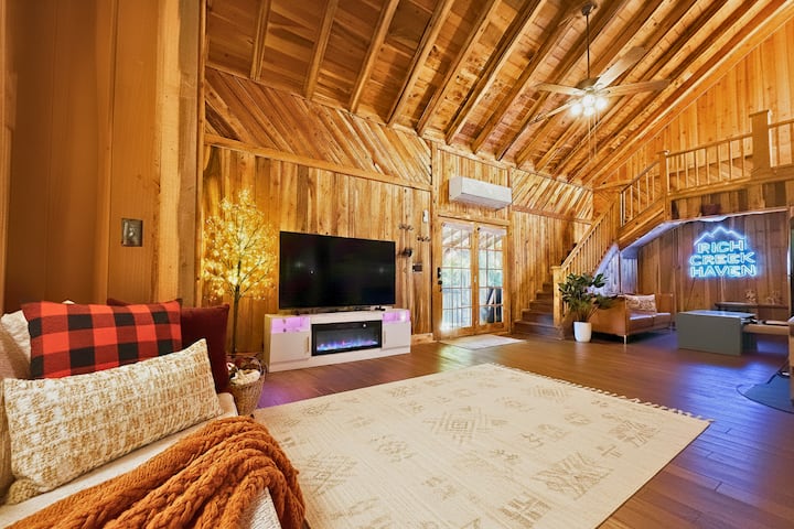 De meeste gasten komen met de auto. De weg die leidt naar - Rich Creek Rd - is een smalle, kronkelende grindweg met zachte bochten en rustieke charme. Je voertuig wordt stoffig (het is een deel van het avontuur!).