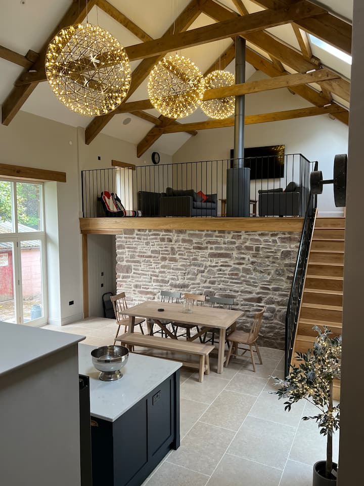 Onze prachtige nieuwe omgebouwde stenen schuur ligt in de buurt van Carmarthen, Zuid-Wales en ligt exclusief in een oude boerderij.