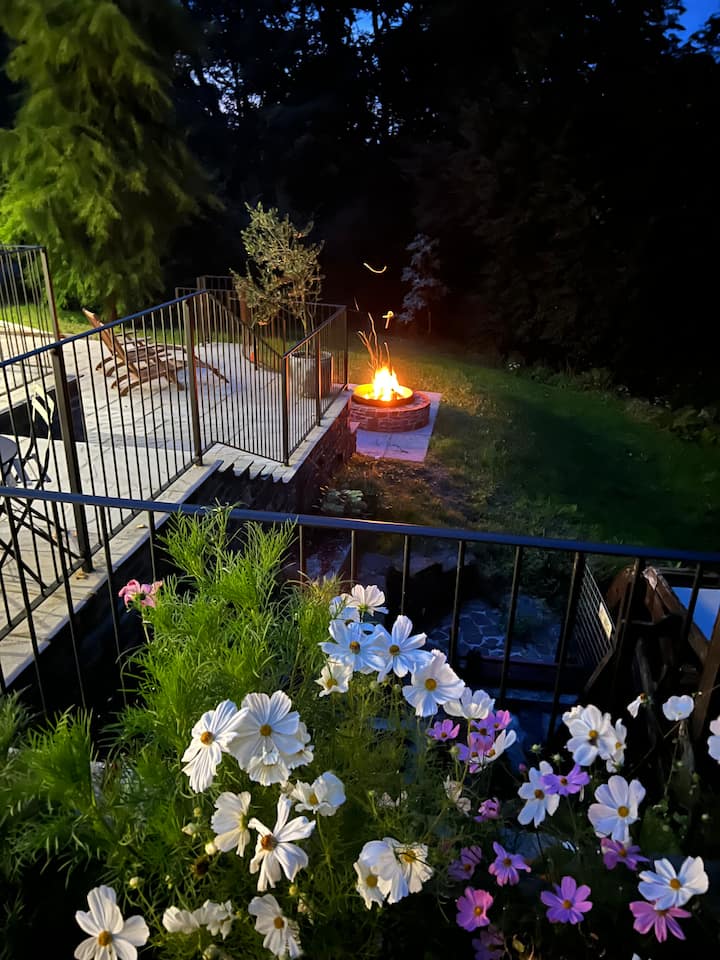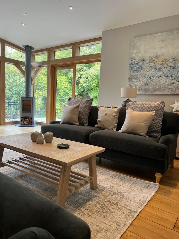 Gezellig in de winter met de keuze van houtkachels in elk van de woonkamers of open de deuren naar het geluid van de natuur en de natuurlijke beek net buiten.