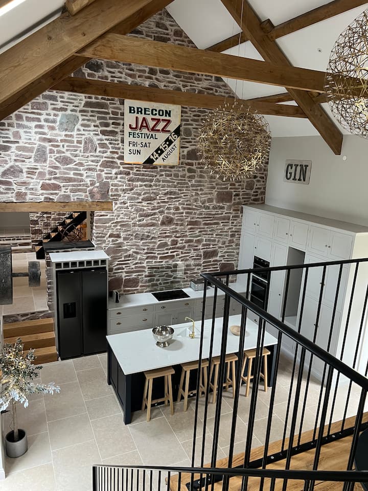 De schuur is met zorg gerestaureerd en waardeert het traditionele karakter van een Welshe boerderijgebouw met de gemakken van een eigentijds modern leven. De originele kenmerken en rustieke texturen van eiken en steen creëren een ruimte die zowel uitnodigend als ontspannend is.