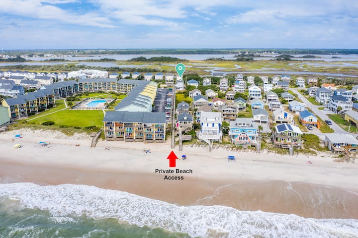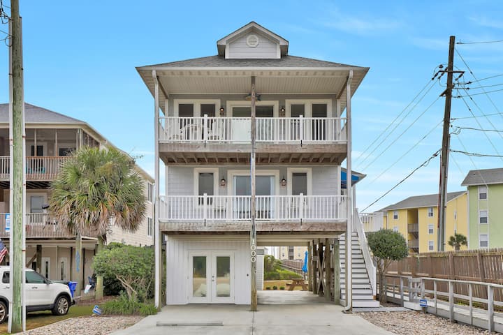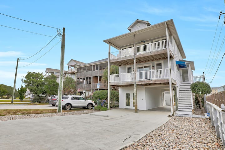 Stap naar buiten en geniet van de kustlucht op de gemeubileerde overdekte dekken, of spoel je af na het strand in de eigen overdekte buitendouche met warm en koud water. De grote achtertuin beschikt over een picknick- en grillruimte, samen met buitenspellen, perfect voor leuke avonden onder de Carolina-hemel.