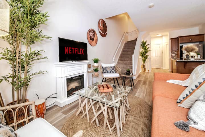Ontspan en kom weer bij elkaar in onze woning in Balinese en mediterrane stijl — zorgvuldig ontworpen voor gezinnen of groepen die op zoek zijn naar ruimte en comfort in het centrum van Edmonton.