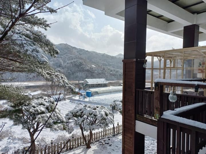 Hongcheon River, Palbongsan en Daemyung Vivaldi Park (Ocean World) liggen dicht bij het pension, dus je kunt een verscheidenheid aan dingen ervaren. Er zijn ook veel restaurants en cafés in de buurt.