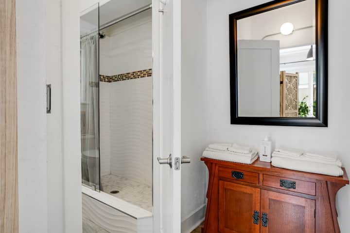 Omdat we zelf in talloze Airbnb's hebben verbleven, hebben we geprobeerd te anticiperen op wat reizigers het meest waarderen: een ruimte die zowel stijlvol als huiselijk aanvoelt. We hebben prioriteit gegeven aan comfort met een premium matras, draadloos internet en benodigdheden zoals thee, koffie, flessenwater en toiletartikelen.