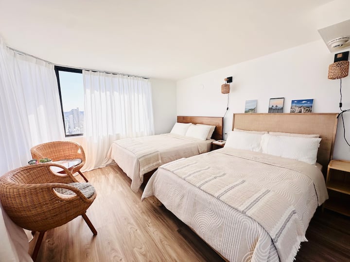 Gloednieuwe moderne apparatuur studio/38FL uitzicht op de oceaan