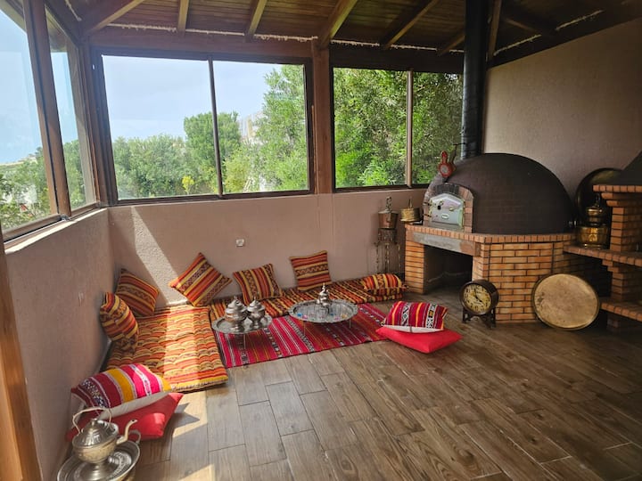 De woning is goed bereikbaar met de auto en er is voldoende parkeergelegenheid. Taxi's en diensten voor het delen van ritten zijn gemakkelijk beschikbaar. We raden je aan een auto te huren voor maximale flexibiliteit bij het verkennen van Tanger en de omliggende regio. De luchthaven ligt op ongeveer 20-30 minuten rijden, afhankelijk van het verkeer.