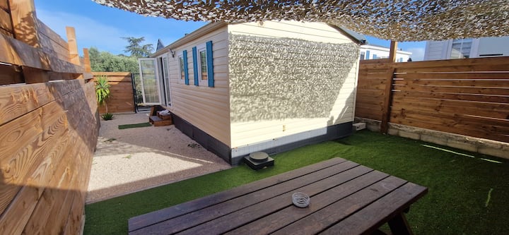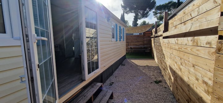 Bungalow nr. 2: tussen olijfbomen en pijnbomen, -10 minuten strand