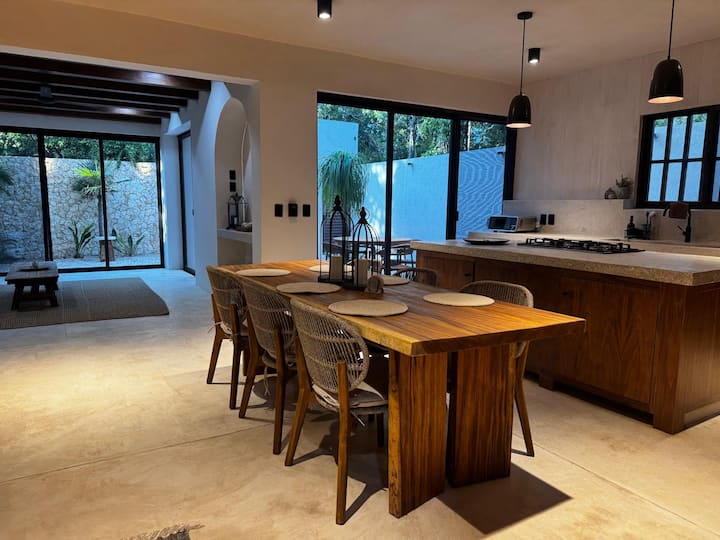 Lasata 'Plaats van vrede' is een nieuwe, op maat gemaakte privé-villa in een exclusieve Residencial Casa Rivera Tulum. Deze villa in mediterrane stijl is een prachtig toevluchtsoord dat naadloos modern combineert met de weelderige schoonheid van de Maya-jungle. De ruime 2700+ sf biedt voldoende ruimte voor familie en/of bijeenkomst van maximaal 8 personen. De algehele esthetiek harmonieert met de natuurlijke omgeving, waardoor gasten zich kunnen onderdompelen in de bezienswaardigheden en geluiden van de jungle. Gelegen weg van het centrum en het strandgebied dat rust en sereniteit biedt. Het is omgeven door natuurlijke ventilatie met een vierzijdig uitzicht op de jungle die een gevoel van privacy en rust biedt.