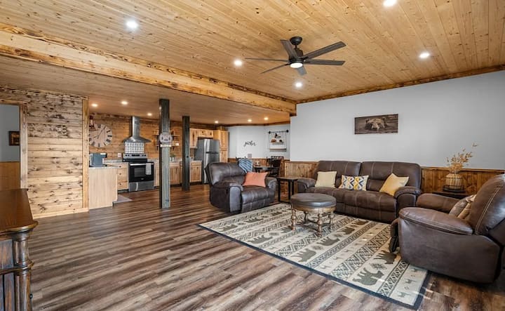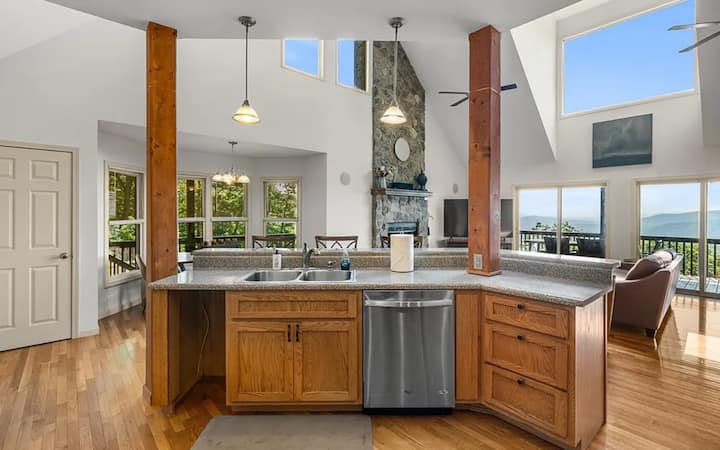 Ontsnap naar Cloud9, een blokhut verscholen in de wenselijke wijk Indian Rock Springs in Murphy, NC. Deze retraite wordt omringd door rustige bossen en een weids uitzicht op de Smoky Mountains en combineert rustieke charme met modern comfort. Ontspan op twee veranda's en geniet van ruime woonruimtes, waaronder twee complete keukens, perfect voor grote gezinnen. De hut ligt aan een onderhouden onverharde bergweg; AWD of 4WD wordt aanbevolen voor de meest comfortabele toegang. Nieuwe hottub geïnstalleerd feb 2026!!