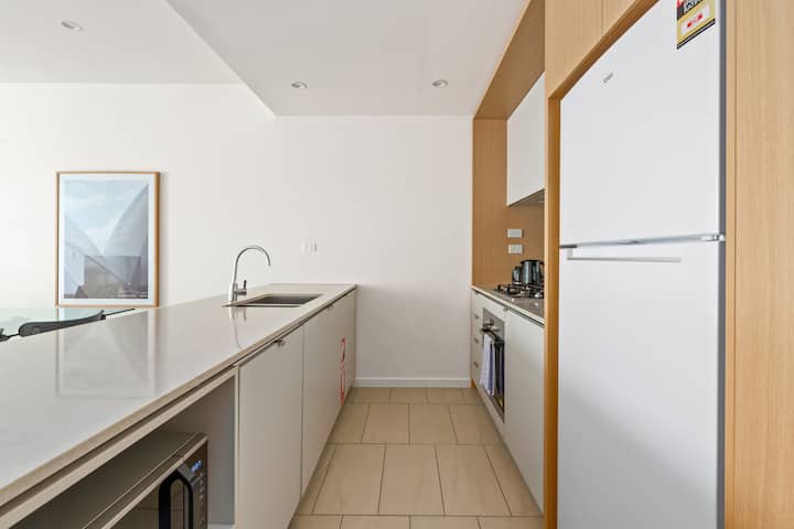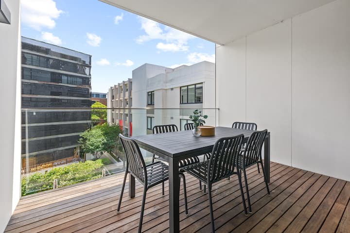 Modern design ontmoet alledaags comfort in dit strakke appartement in Camperdown, op slechts een klein stukje rijden van Glebe Markets, Foreshore Parks, de Sydney Fish Markets en de bruisende eetgelegenheden van Newtown. De open woonkamer opent naar een eigen balkon dat perfect is voor koffie in de ochtend, terwijl de complete keuken en speciale werkruimte langere verblijven moeiteloos maken. Geniet van centrale koeling en verwarming, een eigen wasserette, beveiligde parkeergelegenheid en toegang tot rustige gedeelde tuinen, allemaal in een zorgvuldig vormgegeven omgeving.