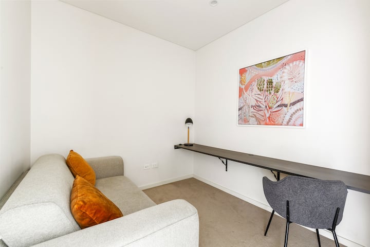 Met centrale airconditioning en verwarming, een speciale werkruimte, betrouwbare wifi, toegang tot de lift en veilige ondergrondse parkeergelegenheid voor één voertuig, is elk detail overwogen voor een probleemloos verblijf, terwijl je op slechts enkele ogenblikken van de meest levendige Inner West-wijken van Sydney bent.