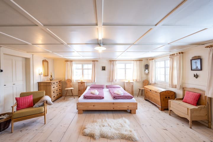 Op bijna 1000 meter boven zeeniveau ligt dit prachtige, 300 jaar oude Mesnerhaus op een ruim terrein omringd door sparren. Geniet van een authentieke en onvergetelijke reis in het verleden - verfraaid met een prachtig uitzicht en moderne voorzieningen.