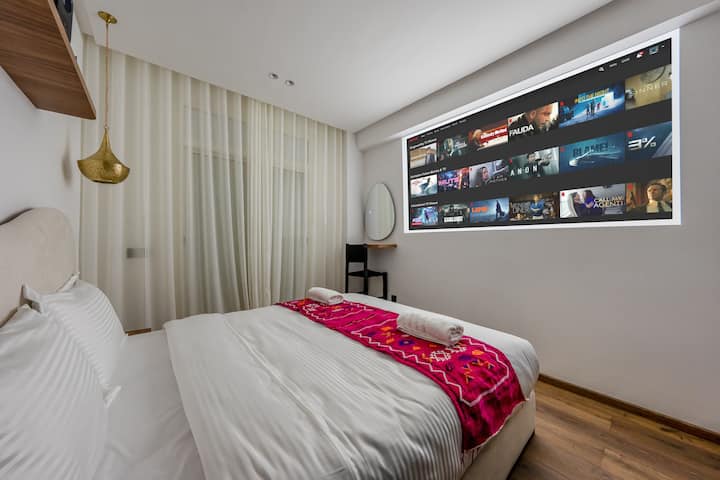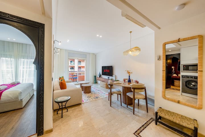 Modern 1BR • Bioscoop en Xbox • Centraal Guéliz