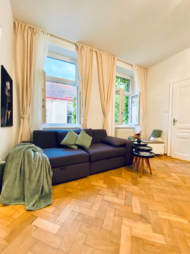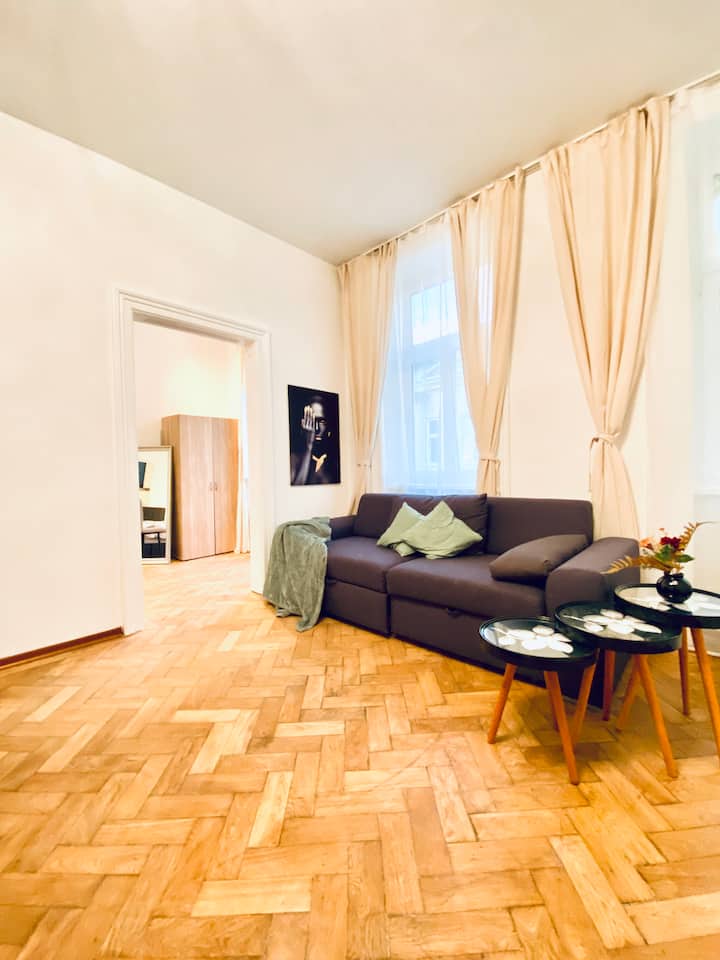 Dit stijlvolle appartement met 2 slaapkamers op de 4e verdieping biedt 55 m² privéruimte voor maximaal 5 gasten. Het is gelegen in het 15e district van Wenen en beschikt over een eigen keuken en badkamer, ideaal voor gezinnen of groepen. Let op: er is geen lift.