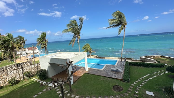 Dit zorgvuldig ontworpen appartement op de tweede verdieping aan de oceaan biedt een hoogwaardige ervaring, zorgvuldig versierd met een hoogwaardige, op de kust/tropen geïnspireerde inrichting voor de ideale Caribische ervaring. Een trap of lift naar het gemeenschappelijke zwembad met uitzicht op de oceaan, samen met 8 handige treden die naar de oceaan leiden. We liggen op 10–13 minuten van het centrum van Ocho Rios en de belangrijkste bezienswaardigheden, en op ongeveer 10 minuten van de internationale luchthaven Ian Fleming.