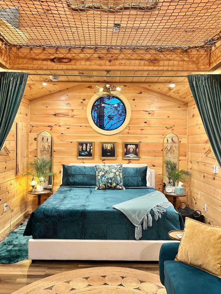 Welkom bij The Deluxe Birdhouse - een luxe 'vogelhuisje op mensenmaat' dat je uitnodigt in een wereld van speelsheid en rust. Vanaf je gemakkelijk toegankelijke parkeerplaats wandel je over de brug van 30 voet rechtstreeks naar de boomtoppen en laat je de magie ontvouwen. Binnen vind je een doordachte inrichting, zachte verlichting en gezellige details. Kook in de volledig gevulde keuken, slaap achter fluwelen gordijnen op het kingsize bed, beklim de wenteltrap naar de dromerige net loft of kruip in de leeshoek voor rustige momenten samen. Dit bosverblijf is betoverend, intiem en speciaal voor twee gemaakt.
