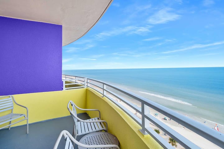 Stap uit op je eigen balkon en geniet van het uitzicht van een miljoen dollar, dit privé-appartement beschikt over een ruime woonkamer met slaapbank, volledig opgewaardeerde keuken en wasmachine/droger. De grote slaapkamer is voorzien van een kingsize bed voor een uitzonderlijke slaapervaring. Prachtig uitzicht op het strand en gratis snelle wifi zijn slechts een paar van de extra details die zijn inbegrepen in je onvergetelijke vakantie in Daytona Beach.
