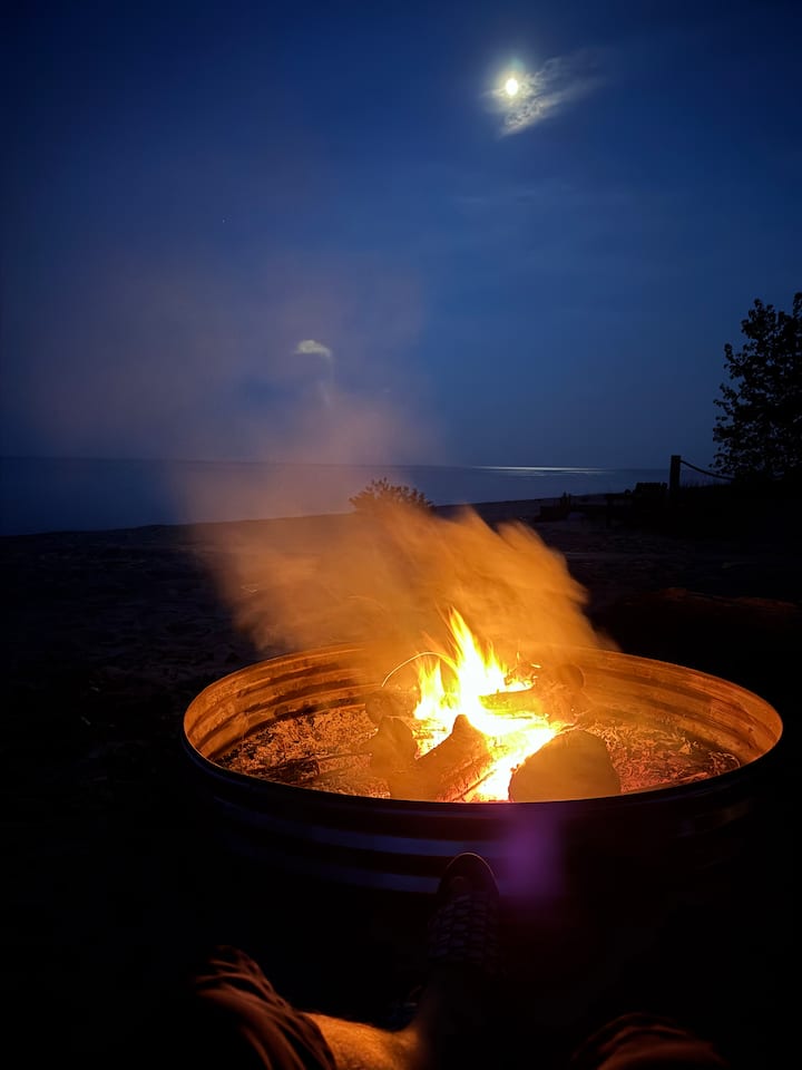 Deze woning ligt direct aan Lake Huron.