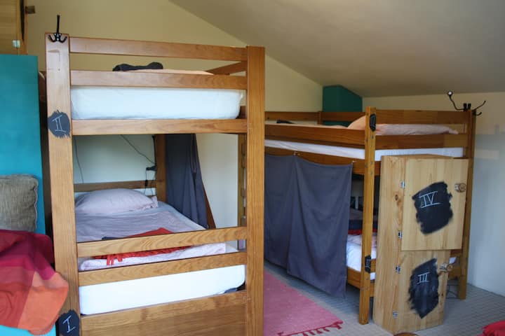 Slaapzaal met 8 bedden in het hostel op de heuvel